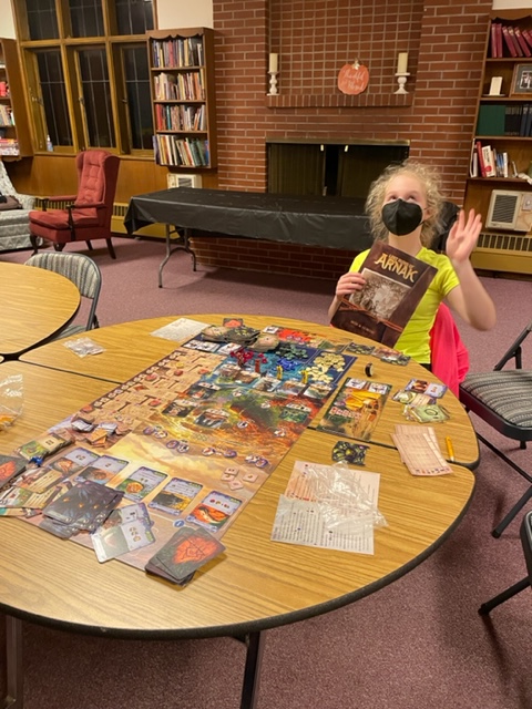 I was at the church to play board games with my dangerous and wicked 11-year-old Zophia, who beat me again. Today’s game was The Lost Ruins of Arnak, the base game. This is one of the newer games that combines a strong theme with more contemporary gaming structures to create a fun and interesting game. The game has the worker placement and resource management style I like. It combines this with deck-building to control your turn and then a research track to apply your acquired resources. The theme, well used, is a 1920s Hollywood-style archeology movie. It plays well for two players and expands some options to accommodate three and four players–the game does not slow much with more players. It is a fav, and I have a blinged-out copy.