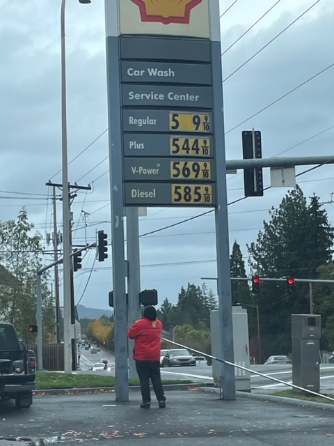 I took Air Volvo to the local Shell station and watched as the gas price slipped to $5.09 (and lower in other places). I watched them change the sign while I was filling up.
