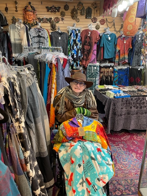Kathmandu got more of our business: A permanent shop in the Skidmore Area. Barb bought Susie a coat of many colors and some clothing for herself. The cold started seeping in, so we decided to continue with the lunch plans.