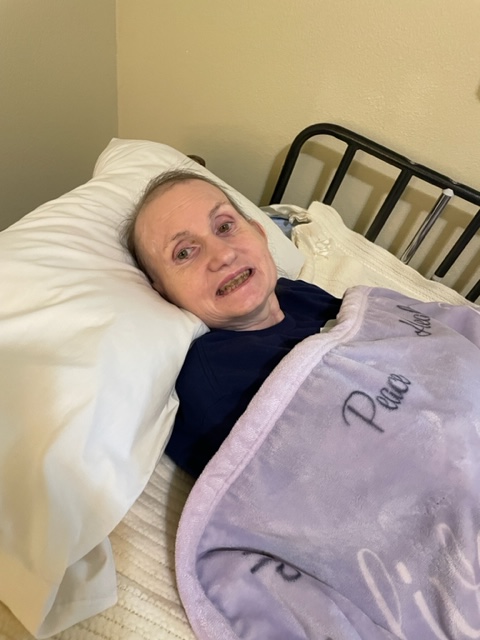 After that, I headed out, knowing they made an excellent chili for the next lunch after PT. I drove over to the hummingbird house to see Susie. Susie was in bed resting. I sat in her wheelchair while she stayed in bed, and we talked about Christmas gifts for folks. I told her all my plans, and she thought them good and agreed to send out some more fruit cake. Susie wanted some fruit cake, so I ordered one sent to the Volvo Cave. Next, we called Susie’s mother, Leta, and they chatted on my iPhone via FaceTime. I held the phone for Susie so they could see each other.