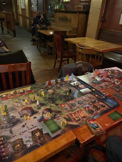 I met Evan there, and we played a game of Architects of the West Kingdom. We both had to remember how to play, but it was all remembered soon. I also ordered a BLT and a beer. Evan had dinner too. We played between bites. I was hungry as I had a busy day; the bartender recommended the BLT–it was terrific.