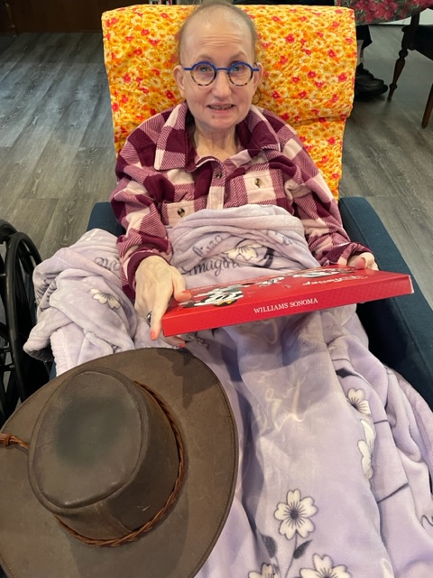 Susie was in her chair in the living room with Blue Bloods, her fav, on the big TV. I got her Advent Calendar, and we had a gummy candy for the day. Susie got just a taste. Susie was doing better today; she was wide awake and talkative. Next, we called Leta, Susie’s mother, and chatted with her for a bit. We discovered she had no spare in her car. For Christmas, we will buy her a spare tire–she will check with the dealership on how to get one and how much. Leta worries about getting flat and having few options without a spare.