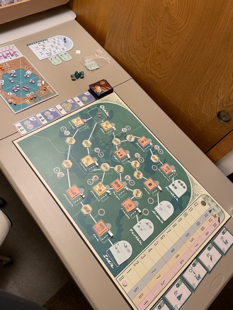 I did set up my new game for solo play, Ostia. I was going to play, but I started to get tired–the side effect of the cold/flu meds. It looks lovely!