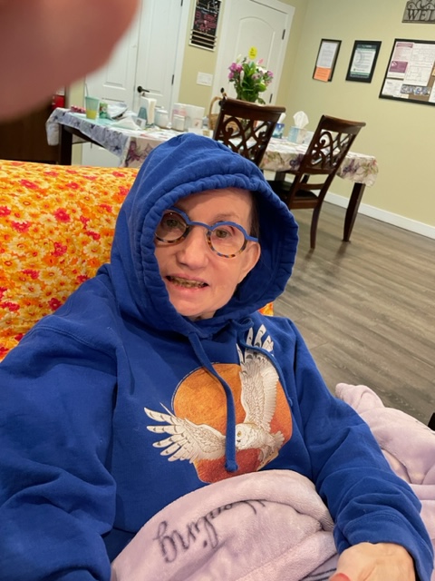 Before this, I visited Susie at the hummingbird house. I had traveled there from work in the morning. I could only stay for about twenty minutes on a workday. So first, we connected to Susie’s mother, who had just finished her hair appointment. So Susie and she has a short chat on FaceTime. Next, as I had some more time, we called Susie’s sister, Barb, who was still at work (a school secretary in Grand Ledge, Michigan), and talked briefly with her. Susie needs some PJs, and Barb might manage that (I have found a few pairs at the house, but most have already migrated to the hummingbird house and, before that, at the Forest Grove Rehab and Care Center–we seemed to have lost a few sets now). I will try to bring some I have found, and maybe Barb can find some more.