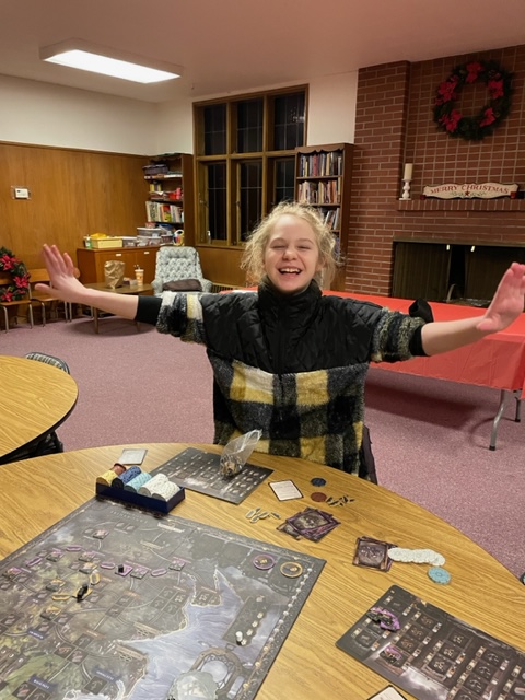 Going backward, I came to the house at 9ish after choir practice on Wednesday at First United Methodist Church, Beaverton–the church next to the fountain and the park just out of Old Town. There, I do not sing; instead, Zophia, an 11-year-old, plays board games with me while her mother, Dondrea, rehearses with the band and the choir. Today we played Architects of the West Kingdom, in which Zophia was having some trouble, at first, remembering how to play. Finally, she did build a great work in the game, and gameplay started to return to her. I scored crushingly higher, but she did well and would, in the next play, be ready to defeat me. Architects is a worker placement and resource management and, in its final form, after the latest Kickstarter, has many options and directions. It is rated the 87th-best game on Board Game Geek. It uses my fav option, a simple turn structure, and a difficult overall strategy.