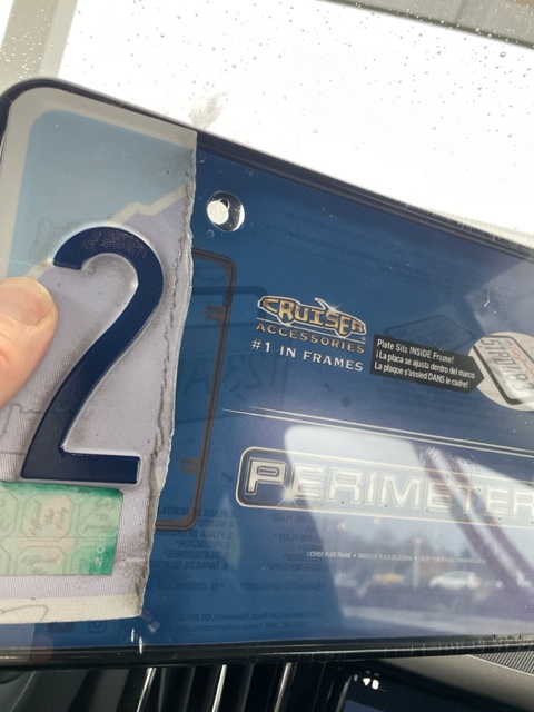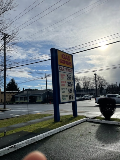 Next, I crossed over Hillsboro to the cheap gas, cash, or debit-only station. I filled up with $3.45 gas. Next, I headed to the car wash I used this weekend. I asked them for the part of the license plate the car wash broke apart on Saturday. Yes, they have a “2” for me. They provided free license plate holders and installed one for me (also a free service), and we moved the unruined plate to the back, now safe in a metal plate holder. Then, primarily legal again, I headed across Beaverton to see Susie in AIr Volvo.