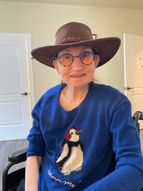 I arrived around 12:30 in Air Volvo at the hummingbird house. Susie, she was up late and was just finishing breakfast. Jennifer, the live-in and weekday nurse aide, was busy with folks. So, I slipped Susie from the breakfast table and moved her to the social room (letting Jennifer know I was stealing Susie). We called her mother there. Susie had slept poorly (she was up all night) and looked a bit out-of-sorts, but she could interact with Leta, her mother, and they talked about each other’s day.