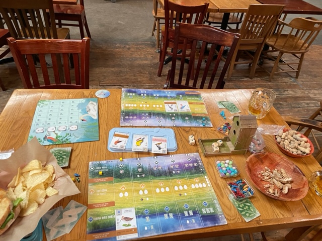 Before this, I was at The Lucky Labrador in Portland off of Hawthorn playing games and eating (and drinking) with Evan. We played Wingspan (my copy of the game and I won that one) and the locally created Vindication board game. I had a Czech beer and a Bacon, Lettuce, and Tomato (BLT) sandwich (the bread is artisan, and the bacon is hot, thick-cut–wonderful). Evan was happy to crush me in Vindication.