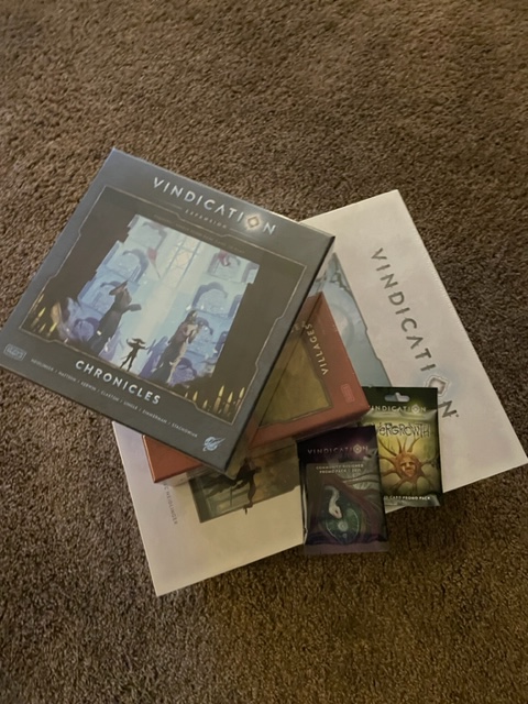 Aside: I put pictures of the game on FaceBook for Vindication. There is a tradition to show when you received the game and the size by comparing it to a banana. The supporters of the game are a crazy happy bunch.
