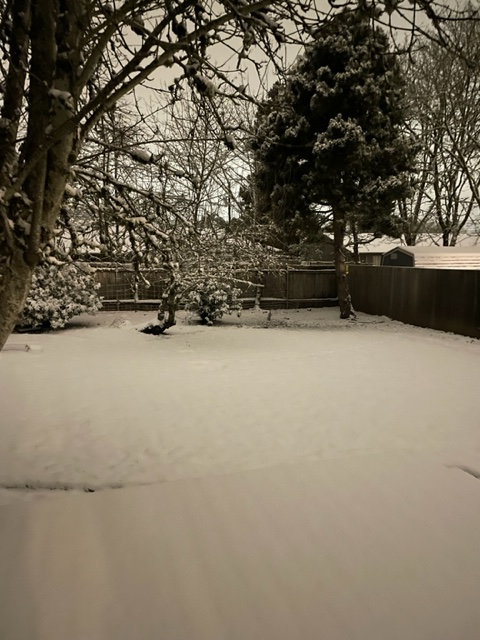 The backyard with snow at 10ish.