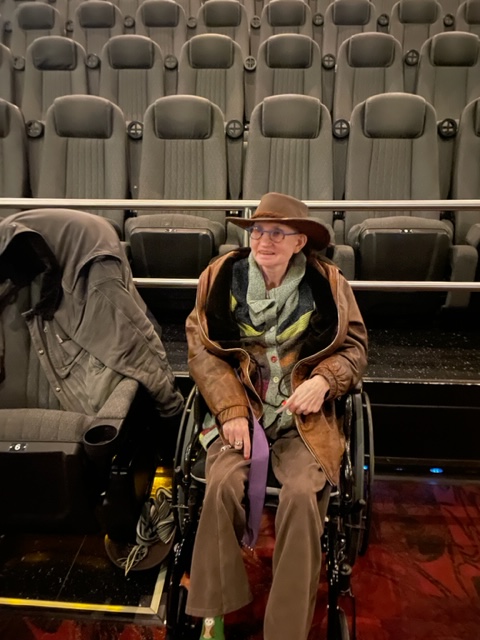 We had to use a kiosk for tickets and then found our way to theater 9. Evan found us later. Corwin got the supplies, and Susie had some diet coke and a few bits of popcorn. The movie was great. Susie was happy with my lifts as I used the lift belt (Susie does not come with handles).