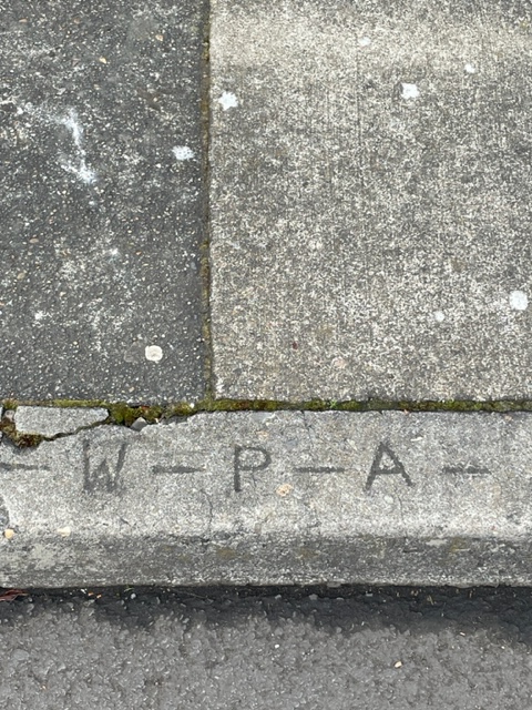 Moving to the evening, again staying with important events, I drove to the church at 4ish. Parked Air Volvo. I walked to the coffee shop and got a turkey sandwich on a bagel instead of bread. I ate it outside near their gas fire under a tent. Nice to eat outside. I believe the 1930s WPA built the streets in downtown Beaverton; I saw the curb still showing the marking while walking to get a sandwich.
