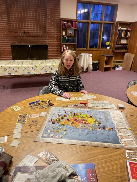 Working backward, I am back at the house late, 9:15ish, after meeting Z and Dondrea at the church. Z and I played the board game Concordia using the Corcisa map (good for two players) while Dondrea and other choir folks practiced and prepared for upcoming worship services. While remembering we had played this before, Z took a while to remember how to play and was still a bit inefficient in her play. The final score showed this. We started a second game, and she was already climbing into the lead when we had to stop.