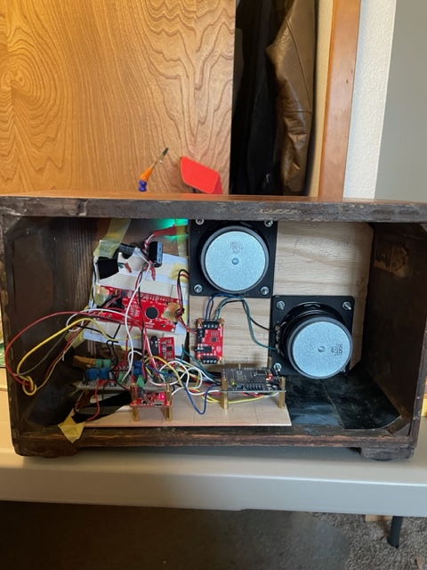 Yes, the huge magnets for the speakers are a bit close to the microcontroller, hum. But we are far away from the radio–it should be OK.