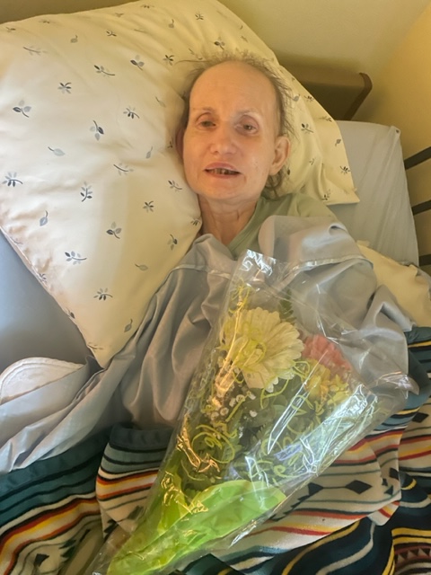 Susie was asleep and took a moment to wake. She was delighted to have me visit, even for a few minutes. Susie loved the flowers that would go in her room for her to see while staying there most of the time. We did call Leta on my iPhone and used FaceTime so everyone could see each other. Leta was happy that Susie could talk again, awake and looking much better. It was an excellent short time together.