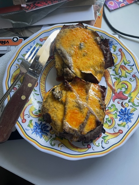 I was tired and slept a bit until after 6PM. Next, I made an Everything Bagel with roast beef and cheddar in the broiler. It was great. I rested for a bit more. Got a request for dinner after I had started my dinner with Mariah in Portland, which I had to reject. Next, I called into a church Zoom meeting.