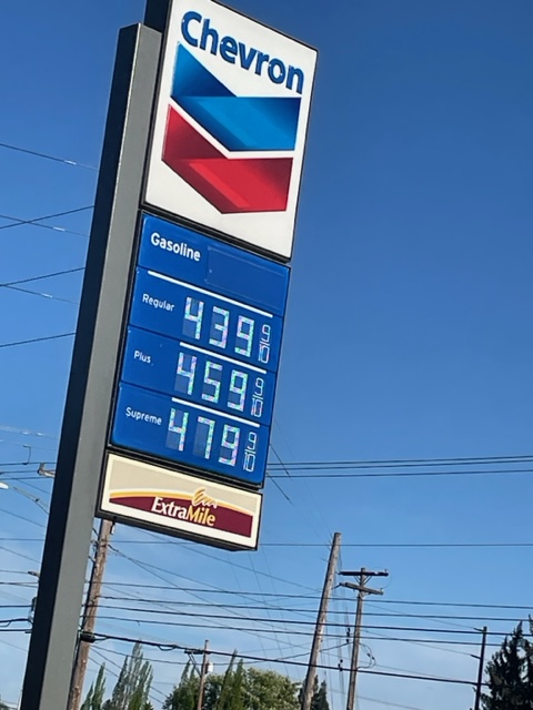 I stopped by Panda Express and got some below-average, overly-sweet food that suggests Asia (or maybe an Asian food nightmare). I had to get gas at $4.39. Gas now increasing slowly in price. I will resist any commentary. Remember, we have no sales tax when comparing prices, and all gas is full service.