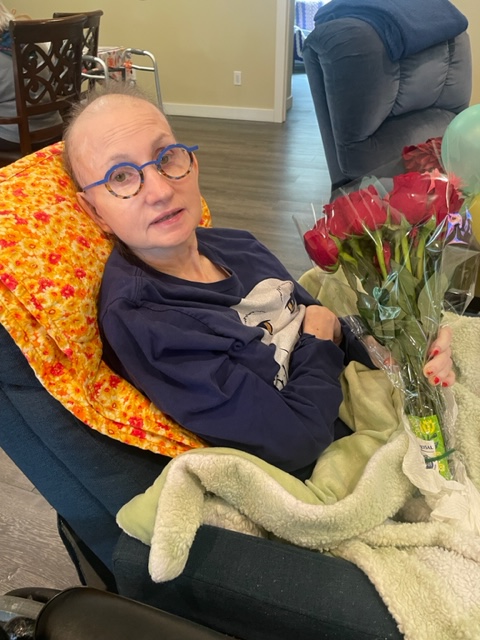 (with the roses from Linda Wild sent to me–Susie has them now in her room)