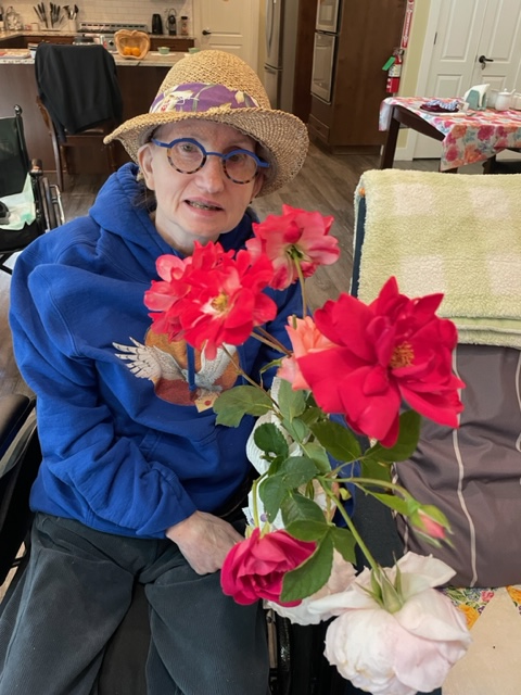 I headed to see Susie after I again toured my roses and cut more fresh blooms to take to Susie. I also spent some time dead-heading the bushes. I will have to clean up the cutting I left under the roses or leave that for my lawn service (tempting). When boarding Air Volvo, I took my cuttings, carefully wrapped in a paper towel, and set them in the seat next to me. I headed in little traffic to Susie’s place at the hummingbird house in Portland (Tigard) at Allegiance Senior Care LLC, 9925 SW 82nd. Ave. Portland (Tigard), OR 97223; phone (503) 246-4116. It was a warm sunny day, headed to over 80F (27C).