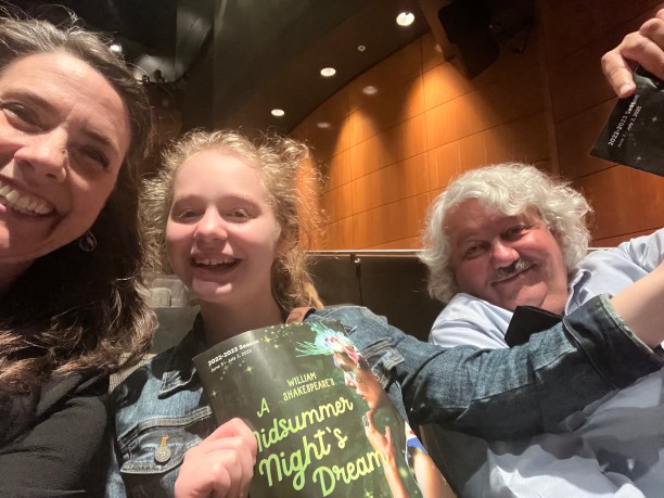 The Portland Center Stage at the Armory group reduced the cast to just nine people, and they switched roles and costumes, with some of the leads taking secondary positions. In contrast, others played almost the same character in both versions (the Duke, Theseus, and Oberon being the same actor). It was fun to see the actors taking different roles all night, and the costume changes helped to direct the adaptation for us, the audience. The play switched to slapstick and physical comedy a few times while the actors shouted Shakespearean insults at each other. It worked. Dondrea, Z, and I enjoyed the play and were laughing through much of it. Recommended if you can fit it in (closes on 3July2023).