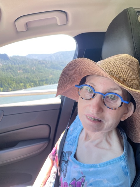 Anassa, the weekend nursing aide and filling in for the holiday weekend, had Susie ready when I got there and popped Susie from the wheelchair into the co-pilot seat of Air Volvo. Anassa found it challenging to get Susie inside without hitting Susie or her head on the doorframe–I have the same issue and hit my head a few lifts back. But, without incident, Susie was safe, and we headed out for a driving holiday.