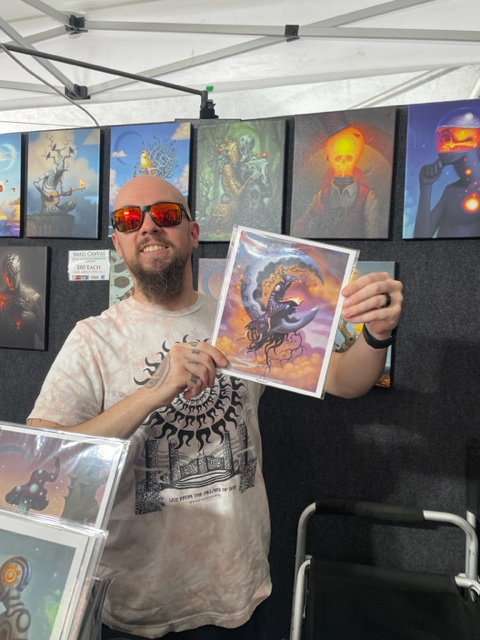 The man with some of his art (Barb and I both bought a print)–www.jrslattum.com.