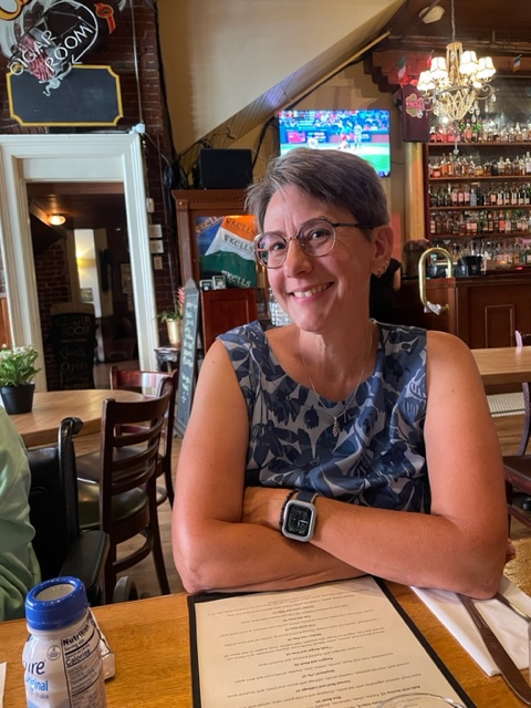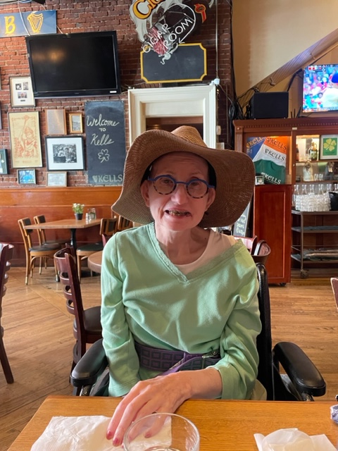Once we had a few treasures, we headed to Kells and learned we were too early, they open at noon, but they let us in any way (it was getting quite hot). Evan found us there and joined us for lunch. Barb and I had some drinks (Barb a cider and their local red ale). Susie has water with thicker. Barb ordered a burger, and I had shepherd’s pie, and we got Susie some Ensure we brought and mashed potatoes with a touch of gravy. Evan, arriving later, had bangers and mash with an adult beverage.