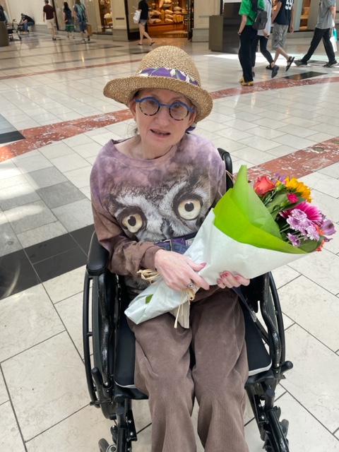 We soon arrived, and I had no problem unloading Susie, and soon we were in the mall. We used the Macy’s entrance, and the handicap door has finally (after two years) been repaired. We pushed the button, and both doors opened like normal. Excellent!