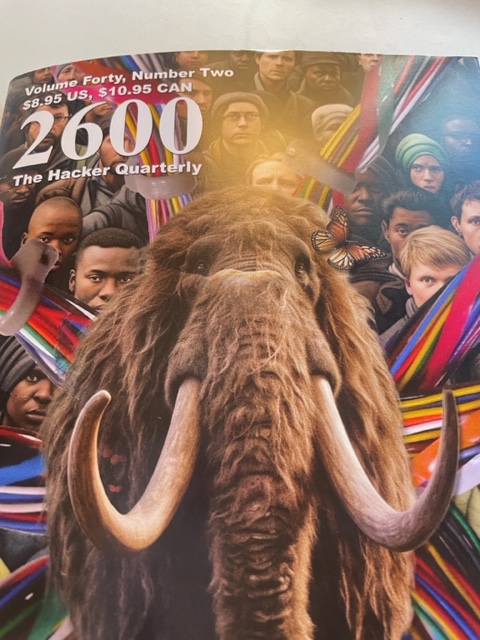 The mail came, and I was surprised to find a new 2600 Magazine. I have been waiting about a year to be published and have heard nothing from the hackers running the publication. I opened the table of contents, and my thumb was over the last few entries, and I saw no sign of my piece; I thought I would have to check if they decided to pull it. I flipped through the paper copy and noticed my name. Yes, page 57! Rechecking, I found my piece, “Turing’s Battle,” near the bottom of the table of contents. Finally, I am published! The hackers will not have the new 2600, Volume 40 (number two), in finer pro-hacker bookstores for a few more weeks.
