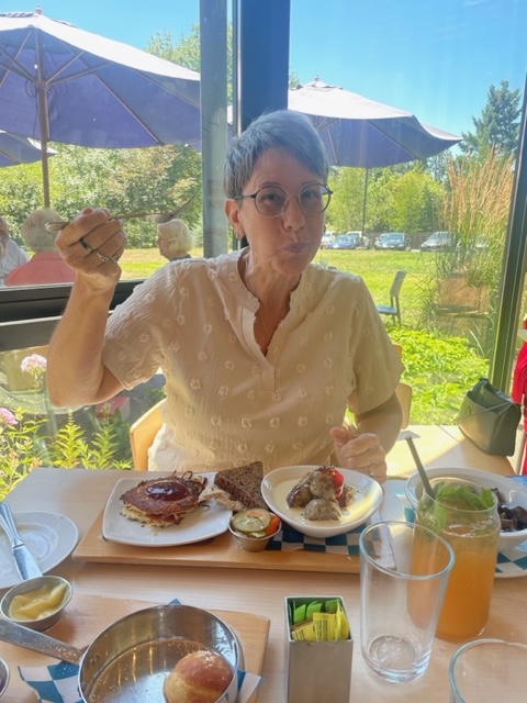 The Broader Soder Beavert is a Scandinavian cultural center cafe serving only breakfast and lunch. Their food is excellent, with Barb enjoying the meatballs in cream sauce with potato pancakes and mushrooms on the side (so good the mushrooms are not just delicious but proud), and I had the hash with smoked trout. We shared some pancake balls with lemon curd and jelly, lingonberry, of course.