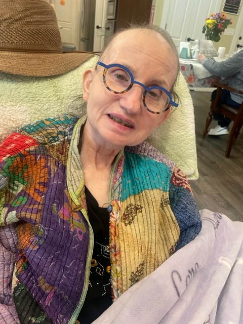 Susie was resting in her bed, listening to music. I just sat in the overstuffed chair and sat next to her. We talked a bit, and Susie seemed confused about where she was and if she could go home with me. Susie was very tired from everything we did and missing her sister.