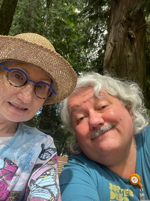 I started back on my new project, but soon it was time to head out. It was slightly overcast; it was a sticky 70F (21C) day in Oregon. I boarded Air Volvo and was soon delivered, without issue, to Susie’s place at the hummingbird house in Portland (Tigard) at Allegiance Senior Care LLC, 9925 SW 82nd. Ave. Portland (Tigard), OR 97223; phone (503) 246-4116. Susie was just finishing breakfast, and Jennifer, the weekday nurse aide, produced a blanket for Susie. I then took Susie out to Metzger Park in her wheelchair. The yellow jackets, for the most part, left us alone.