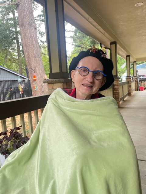 I found a break and headed to see Susie around 11AM. I arrived as she finished a late breakfast at Allegiance Senior Care LLC, 9925 SW 82nd. Ave. Portland (Tigard), OR 97223; phone (503) 246-4116. It was still damp outside, and a slight cold wind, so we only went as far as the porch today, and Susie had a blanket. We reached Leta, Susie’s mother, on FaceTime (Barb, Susie’s sister, was still at work, and we missed her today). Leta was still at a late lunch with friends, and they were happy to see Susie on FaceTime. Leta and Susie chatted for a while, but today was a workday for me, so it was a short visit. Soon, Susie was back inside, happy to be out of the breeze, and I left with a kiss and a promise to return on Wednesday.