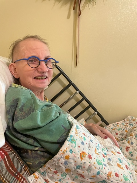 Susie was happy to have me as a visitor, and we soon were set up in my Friday work-from-Susie’s-room configuration. Susie was set in her bed watching season three of M.A.S.H., starting with the episode when Colonel Potter was added to the cast. I followed along, read and approved various items, and then bored Susie to sleep with a meeting on data archiving. Susie did recognize Brad Jones on the Zoom meeting and sent a ‘Hi” to my boss.