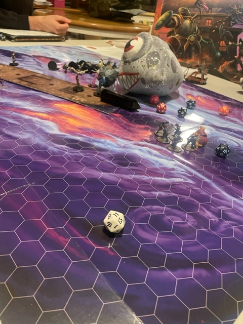 In today’s game, we nearly were whipped out by one battle with slavers and hideous mind flayers. My character, War, an evil but lawful worshiper of War, almost had his brain eaten! We finally managed to drive that off. Before that, we barely escaped living and hungry asteroids. My character was swallowed multiple times. It was a close call.
