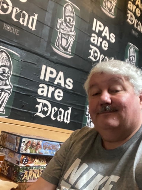 There was no traffic to slow me, and soon, I was parked in SE Portland on the street. I carried two board games into the brewery: Istanbul and Arnak. I opened a tab and saw that Ruben was on special. It was too big for me to finish! Evan showed up when I gave up on the last bits of the sandwich–bring lunch and dinner. Evan decided on the board game Istanbul.