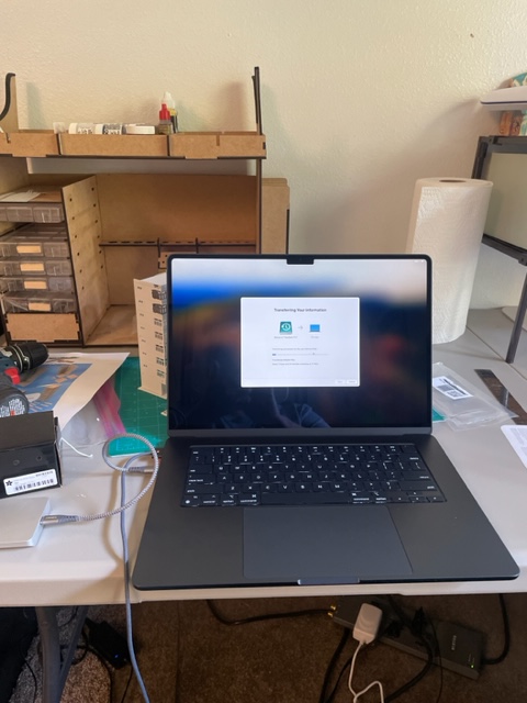 And it was good that it got quiet as my new Apple, a black-as-night Airbook 15″ M2, was delivered. I then started it up, attached my backup, and restored a copy–Time Capsule–of my 13″ MacBook Pro M1 onto the new systems. I always move the image to the next machine. By 3ish, I was back with my image restored. I had issues with Quicken, which rebuilt to last week’s version (not sure how), and I had to reauthorize iTunes. I reconnected Grammarly by reinstalling the add-on to Chrome. I redid all the Quicken updates–remembering most of them. Back! Everything is good from what I can tell.