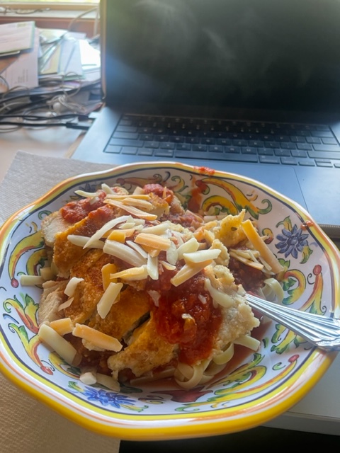 Friday is our staff meeting for the master data engineering team. So we did that, a friendly meeting, and then I started on my usual collection of Zoom meetings. This went on to 10AM. I then slipped out to shower and get dressed. I then approved a few more items and made lunch as I described.
