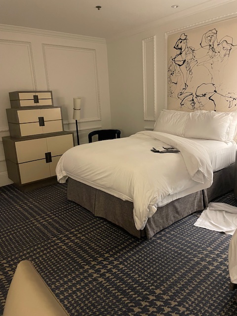 US Grant Hotel, a favorite of mine from biz trips, is now managed by Marriott and owned by a local Native American Tribe as an investment. I forgot the pleasure of Marriott’s well-run hotels. I checked in with a smart and helpful person, paying the guy who carried my bags a $1 tip (just one light bag), who announced me to the desk person. The desk person, wearing a black mask perfectly straight, not only got me a room at 10AM (they were not busy this weekend; the desk person shared) but even booked my exit on Sunday, scheduling a wake-up call and taxi to get me to the airport. Again, you forget what bright and clean is like until you return to a Marriott property.