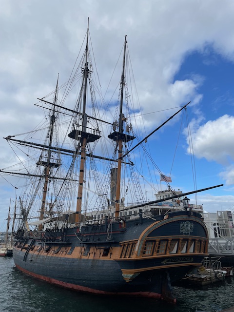 I had been here back in 2006 for a Nike biz trip, my first, about the same time of year, and then they had only a ferry from 1914, Berkley, and the iron-hulled sailing ship, the Star of India. Now they had added the HMS Rose (rebuilt to be the HMS Surprise from various movies–it is not a British ship, and the HMS is part of its name), a few others, including the USS Dolphin AGSS-555, a special deep-diving conventionally powered submarine–a retired submarine now a museum ship. I could see the mix of Cold War and U-boat technology when I toured it. It was a steep ladder and a cramped walk-through.