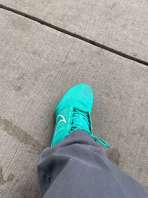 I purchased them at the employee discount and then carried out my purchases to a bench outside. I removed the old, worn shoes, put on the Zoom Air shoes, and then walked back into the store’s regular entrance. I stuffed the old shoes in regrind and walked back to Air Volvo, almost dancing as the shoes felt better. The Zoom Air bounces back and makes you want to run; perfect!