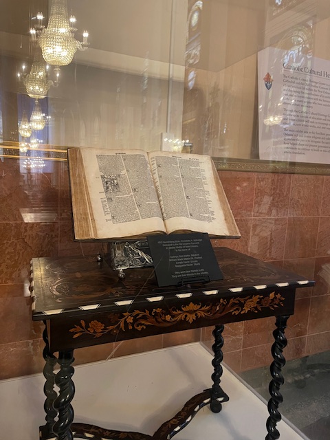 A bible, looking like any old dusty bible and barely protected by a plastic case, was a Gutenberg Bible! It was just set in the back, and the docent barely mentioned it. I was surprised and went to look at it. It was a plainer version but seemed fully intact and ready to use. An intact one with a clear history would sell for over $5 million.