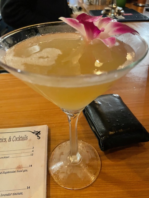 Before this, I was at the Apothecary having an absinthe-based drink. Another vampire, this one with vangs, is making drinks, and I learn that the vampire bartender is the roommate of my tarot reader. NOLA vampires are a small community. I have the Corpse Revigorator #2, a not-sweet drink, and I like it.