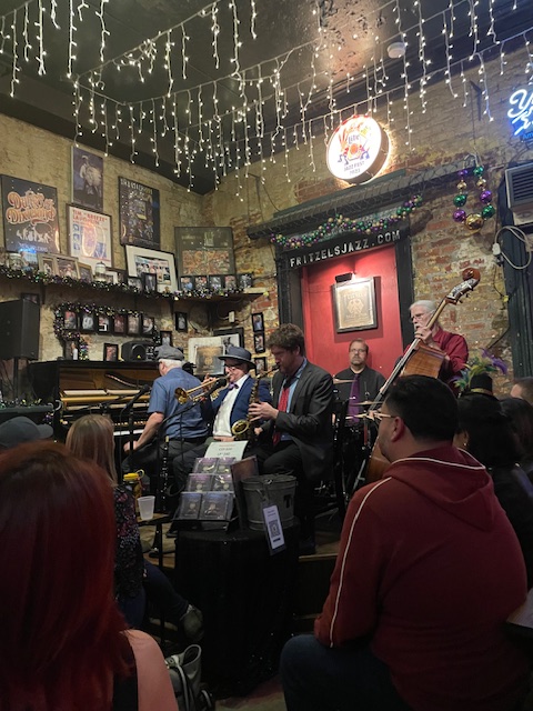 The last thing I did on Friday, besides walking back to the hotel, was to revisit Fretzel’s European Jazz Club and try to listen to some more jazz. I was seated, but Max, whom I had never met before and soon left, waved me to a better seat beside him. I was given a menu and was required to buy a drink, a beer, which I sipped as I had enough drinks for the night. The music was familiar; one tune was from a Disney film and was a favorite: Down in New Orleans.