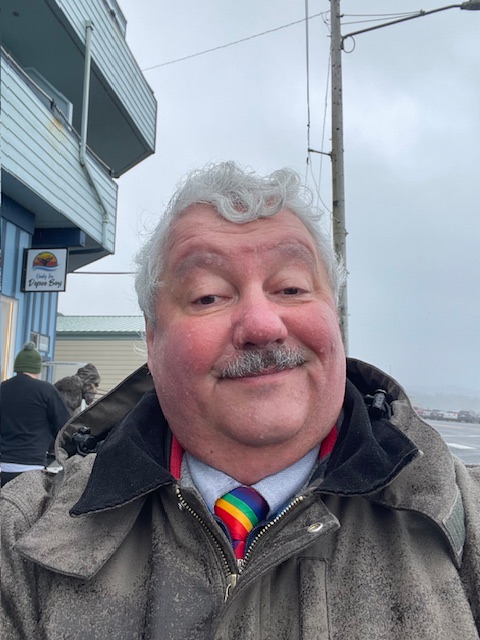 There, on the beach park, I met a lovely young gal ranger in her make-up and nose ring. She loved my look. I wore a dress shirt with a pride tie under a blue sweater. I thanked her for her work; she was stocking the restrooms. A necessary but not glamorous job.