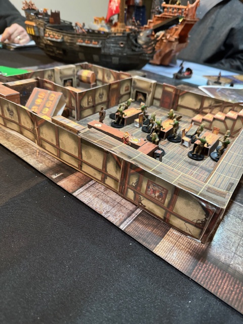 I don’t want to cover too much as this was Matt V’s story, and other groups are playing the same adventure. Our mission today was to slay the last pirate/assassin lord. We hunted down the assassin using various auguries and divination (imagine me as a spinning dervish going into a trance while spinning). Our bard beat the drum while I spun faster and faster. I saw the location of the bad guys in my spinning trance. Yes, it’s a problematic image.