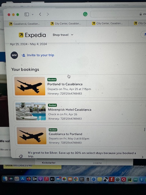 I looked at travel, and the islands were expensive again. I looked at other locations, and Brad, still texting me to ensure I was OK, suggested Morocco for a sudden, unplanned trip. It took some time and a trip to the bookstore, Barnes and Noble, and then Powell’s to find a current Lonely Planet guide to Morocco. I booked a flight and will stay from April 25th evening to return on May 4th, just in time for Cinco De Mayo and a Dungeons and Dragons game. I used Expedia to do packages, and it took multiple attempts to get everything right. The trip was over 3,000 USD, with an extra $700 to adjust flights to be not totally stupid.