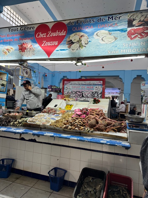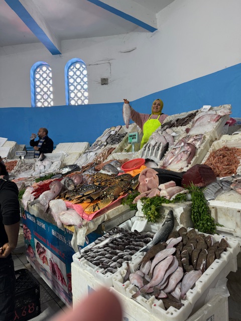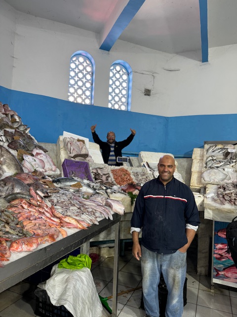 This was followed by a mad dash all over Casablanca as my driver wanted to show me everything all at once. I was bouncing along in the back seat, and he would park. Then, we would jump out and walk to the next vision of Morocco. The fish market, a request in poor French, “Yes, Fish Market,” was his response once I stopped using French or what I think was French. I asked permission to take a photo, which usually got a pose and a smile. Apparently, there are few tourists mixed in with locals.