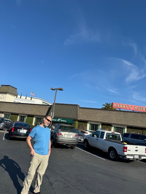 The day started with me waking at 5 and finding breakfast, yogurt, and a banana with liberal coffee made in the French press. I then cleaned up, shaved, and dressed in my Jupiter Disco T-shirt and my blue cloth pants. My belt is pulled to the newest holes and barely holds on my pants. I am still losing inches and some weight. I finish, and then my colon decides it needs attention. I finish all of this just as Matt V arrives at 6. We move his red Prius into Air Volvo’s place in my driveway, and Matt takes over the piloting. We set navigation to Redwood City and head south in Air Volvo.