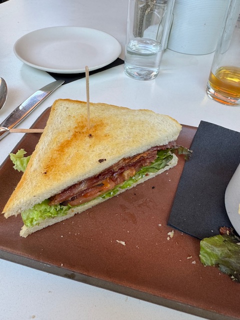 We stopped in a small town, Hopland, on US 101 that seemed a good fit: The Golden Pig. I had a BLT with a Czech beer, while Matt had a small pocket-like savory breakfast sandwich in a perfect golden crust. My BLT, while good, was not as good as the ones at Lucky Labadore in Portland. The bread was likely locally made but not airy like that in Portland. Still, it was good.